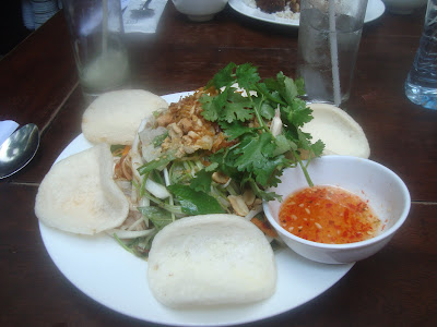 The banana cake came with a frothy coconut milk to dip in...mouth-watering. The atmosphere was great and the food was even better, all for a whopping $8. Can you handle it?