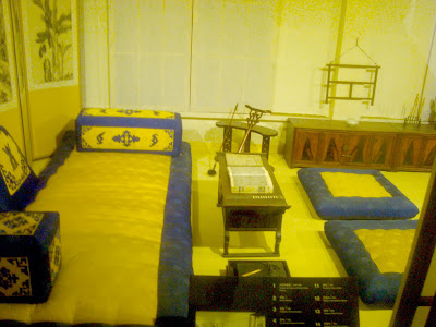 My friend pointed out, "Imagine getting stuck in the rain with that on." You would be a giant wet mop. We really wanted to go into the displays of traditional rooms and snuggle up in the tiny beds, but the glass seemed impenetrable, unfortunately.