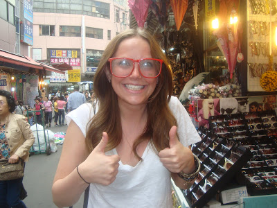 It wouldn't be a true Korean experience without sporting some fake glasses. Although these particular ones were sitting out for so long they were filthy. I could barely see out of them and they left a dust stain on my nose...lovely.