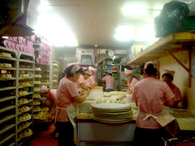 We were about to head out to eat when we saw a long line. Curious, we investigated and soon found out the line was for dumplings. We looked at the menu; 10 for 4,000 won. Yeah, thats a no-brainer. So I get in some make-shift line and wait what seemed like would be quite a while. However, one of the workers took my order in a backhanded way before I even got to the front of the line. Why? No idea. She was probably thinking, "alright I gotta get these foreigners out of our hair as soon as possible." I asked for ten, and accidentally got 20. I peaked into the factory-like shop where they were made. The uniforms, along with the speed with which they cranked these dumplings out reminded me of the "I Love Lucy" which Lucy and Ethel get a job working at the chocolate factory.